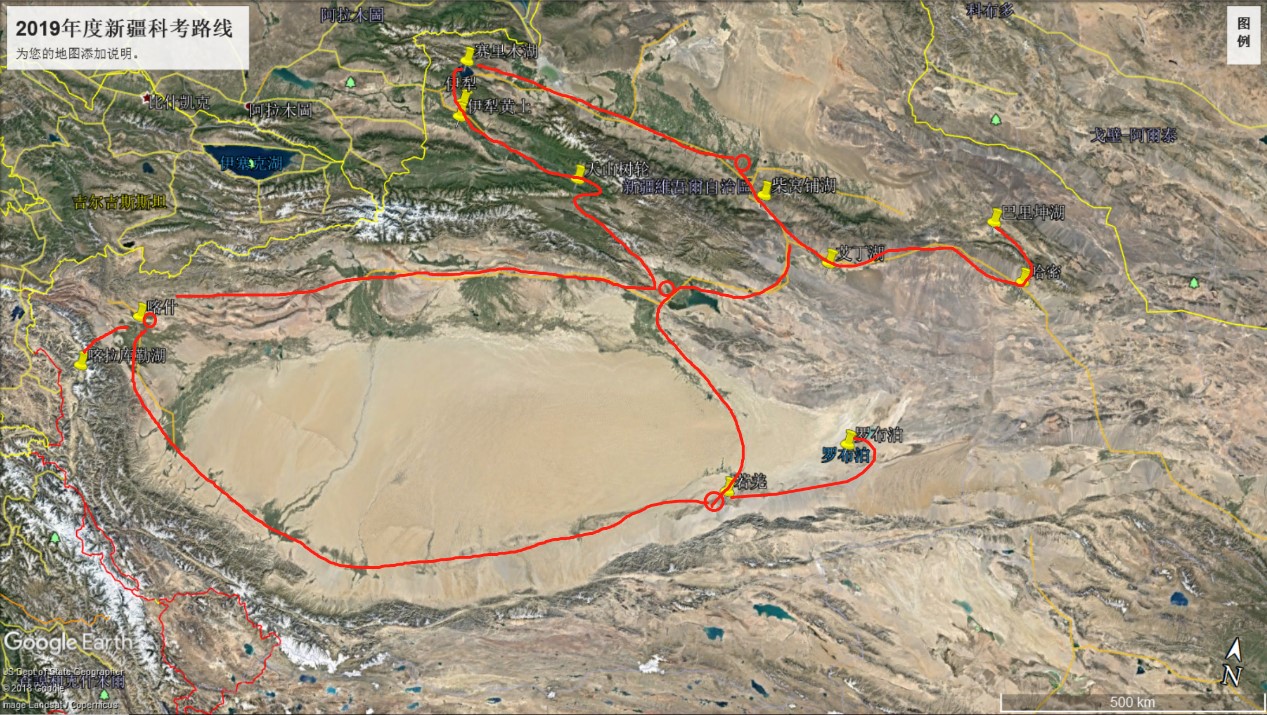 2019年度地環所分隊天山-帕米爾區科考路線圖(國內段)