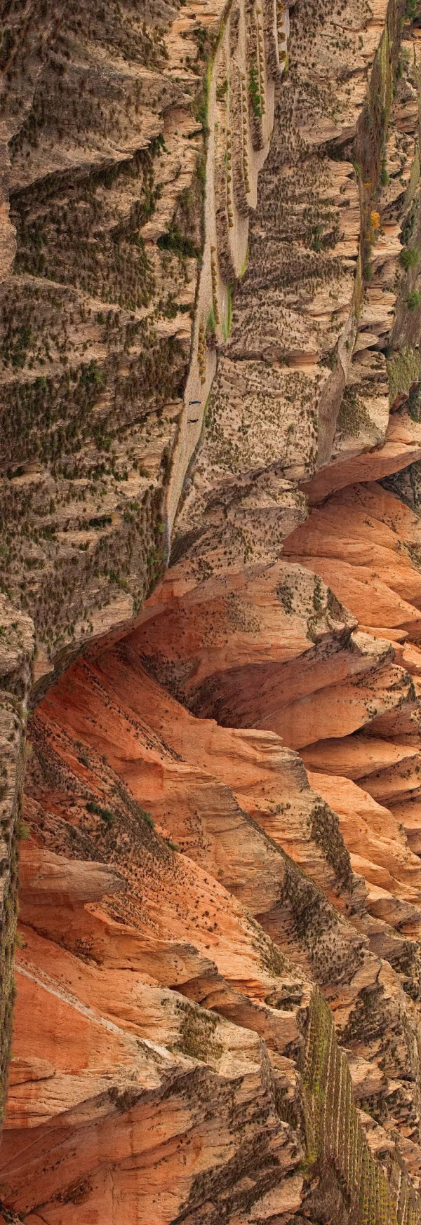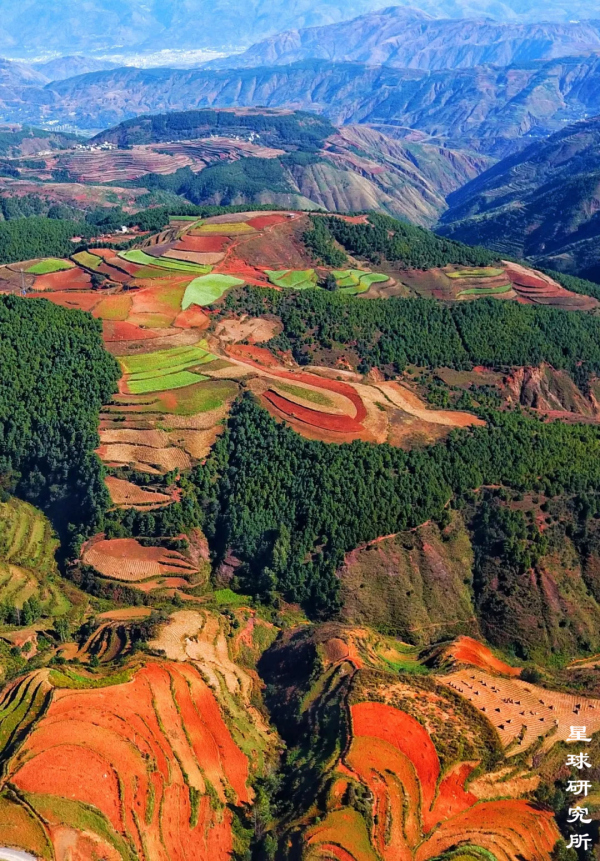(請將手機橫屏觀看,黃土梯田,注意上方的人,圖片源自@VCG)