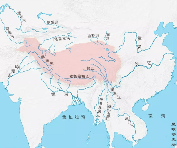 (發(fā)源于青藏高原的主要河流分布圖,制圖@王朝陽/星球研究所)