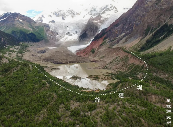 (白線為冰川曾經(jīng)推進的位置,攝影師@朱海峰)