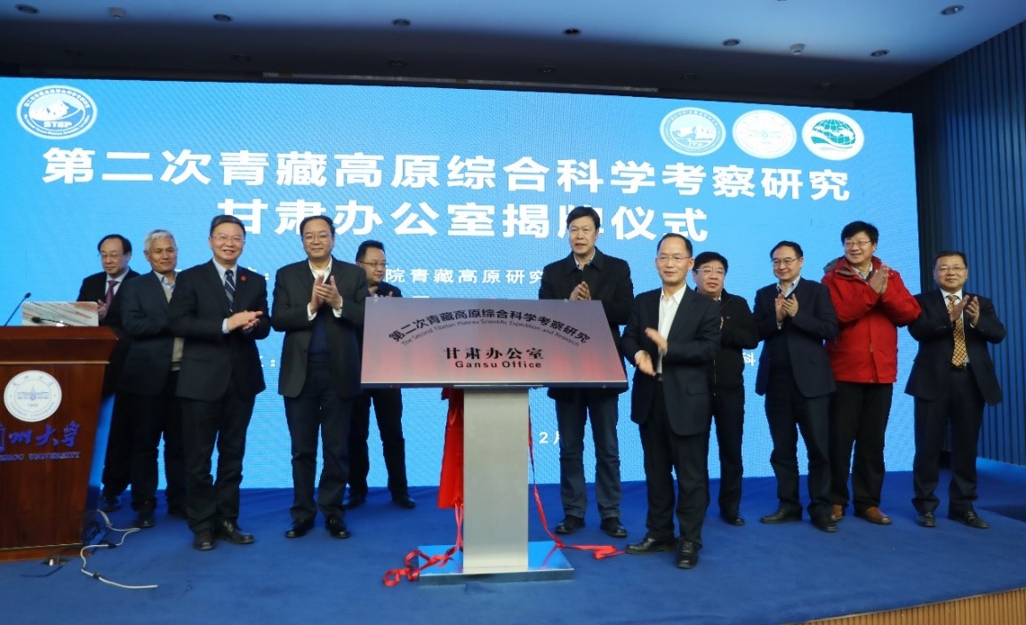 2019年12月30日下午,第二次青藏高原綜合科學考察研究甘肅辦公室揭牌儀式在蘭州大學隆重舉行。成立第二次青藏科考甘肅辦公室,是甘肅省和蘭州大學以實際行動服務國家發展戰略需求的務實舉措,也是中科院青藏高原所積極搭建科考協同平臺、促進地區科研發展的落實響應,旨在共同保障甘肅省第二次青藏高原綜合科學考察研究穩步推進。